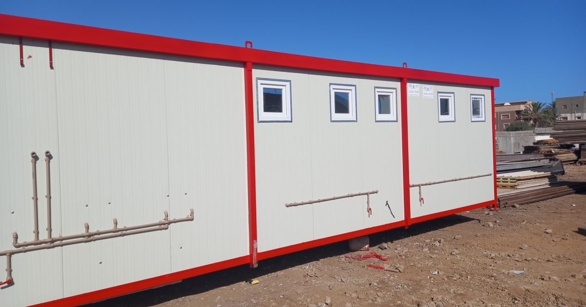 Trailer 3.5 m x 9 m Bathrooms containing 5 toilets + 5 showers + 6 washbasins